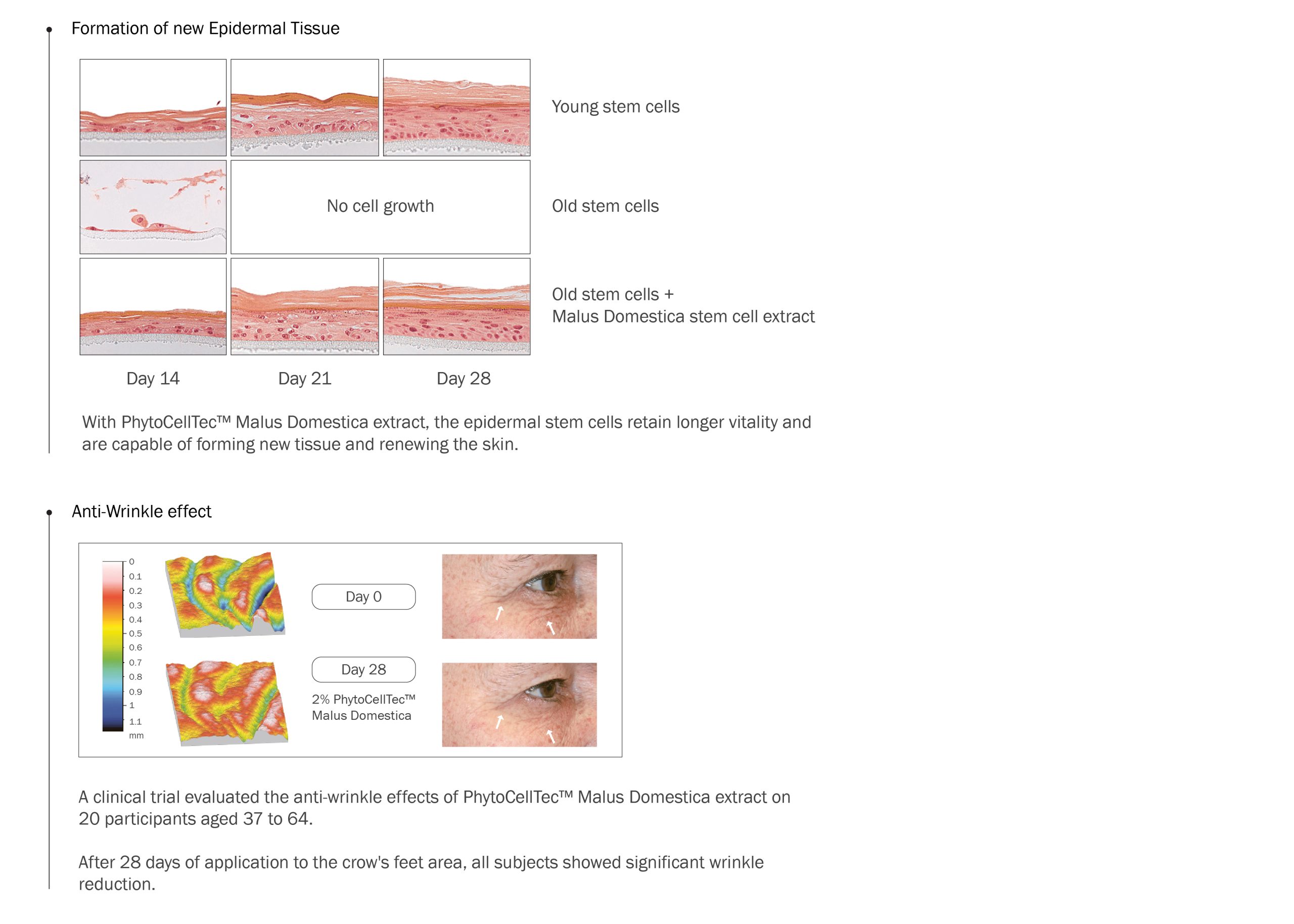 Research conducted on PhytoCellTecâ„¢ Malus Domestica Stem Cell extract on: